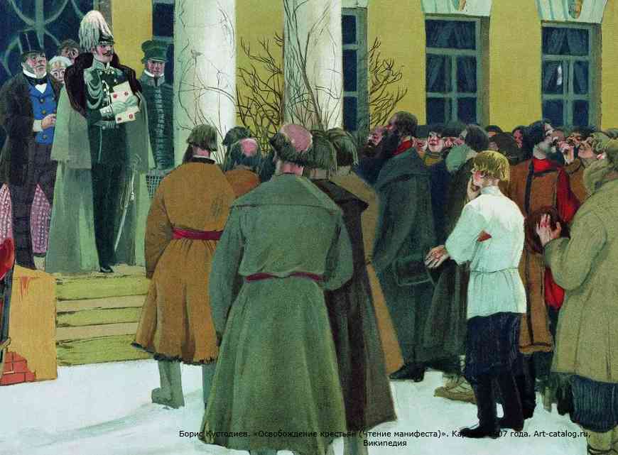 Как идея отмена крепостного права была крайне необходима, однако её реализация должна была сопровождаться соответствующими изменениями в политической, финансовой, судебной и прочих системах общества, актуальными для исторического момента, чего не произошло. Поэтому Великие Реформы в совокупности провалились, привели Россию к 1917 году и появлению новой формы крепостной зависимости — колхозам.