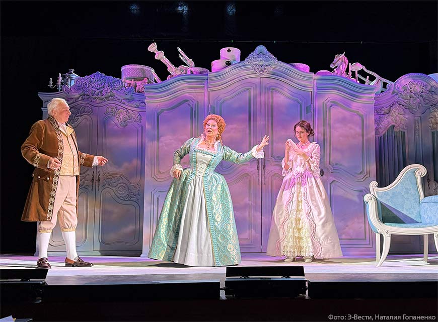 Императрице было бы приятно знать, что её «вещица» 1786 года появится на сцене театра, который славится не только великой русской театральной школой, но и духовными ценностями. Как подобает царскому достоинству, мысли самодержицы выражает звездный состав труппы, а роль самой императрицы Екатерины II (одновременно роль жены Собрина) блестяще исполняет народная артистка России Елена Харитонова.