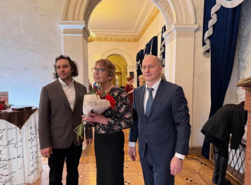 Две из трех присужденных Памятных знаков 2025 года были вручены тем, кому Театр Пушкина обязан появлению скульптуры Александра Таирову и Алисы Конен на Тверском бульваре, ещё одна — потомку звезды Камерного театра Юлия Хмельницкого, сохранившему память о его жизни и традициях: Награда была вручена: